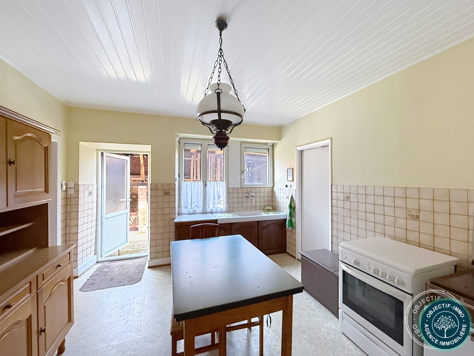 La cuisine s’ouvre sur une agréable cour intérieure, à l’abri des regards, pleine de charme.