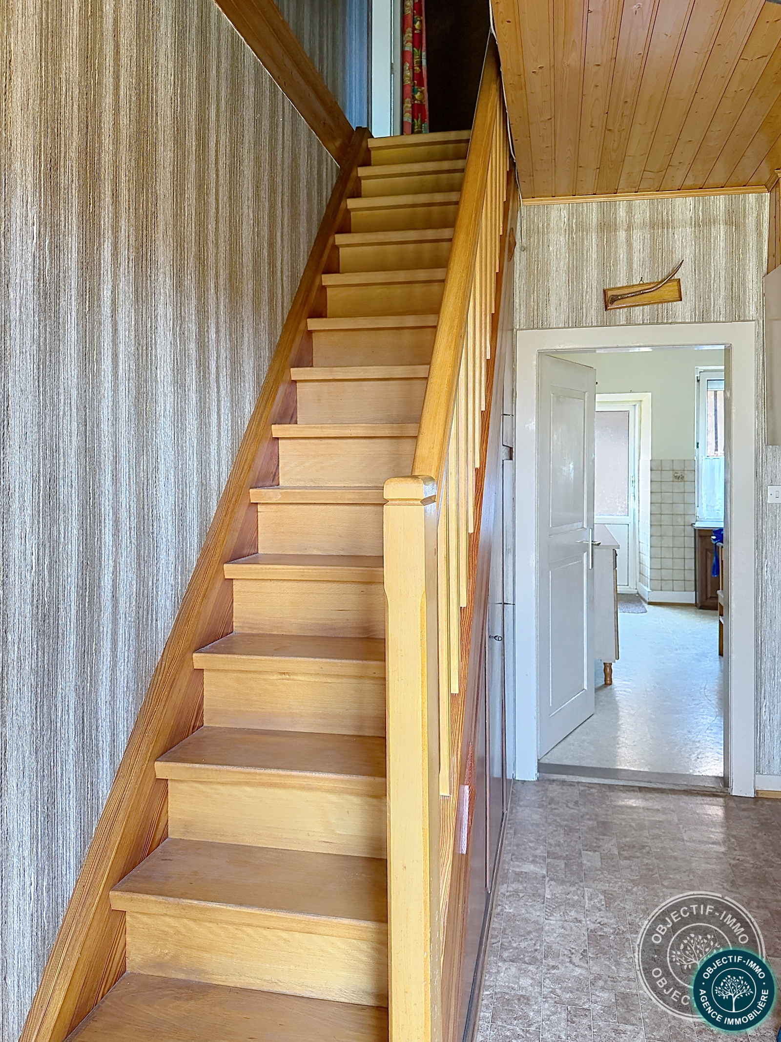 Au rez-de-chaussée : une entrée, un salon-séjour, une cuisine, une chambre ainsi qu’une salle de bains.